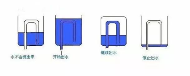 若酒等于或超過虹吸管頂部,虹吸管內(nèi)充滿了酒,并且右端偏高、壓強增大,酒便會受到擠壓,從虹吸管左端的杯底排出,直至杯內(nèi)酒與虹吸管右端管口平齊為止。